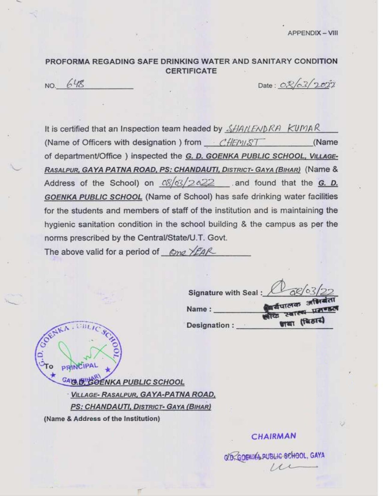 | 7 | SCHOOL EMAIL ID | gdgoenkapubschoolgaya@gmail.com, gdgpsgaya@gmail.com |