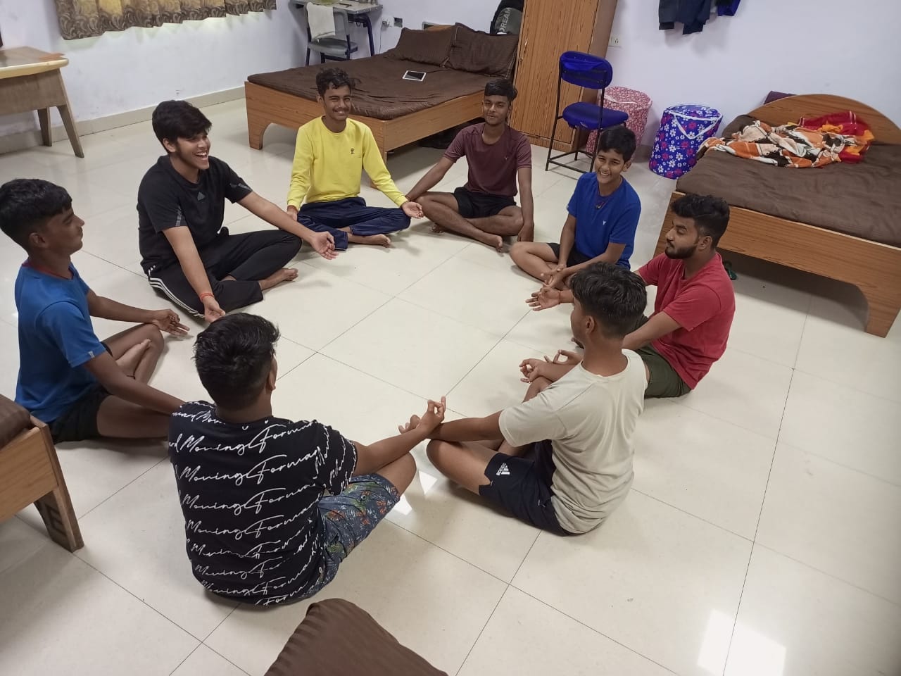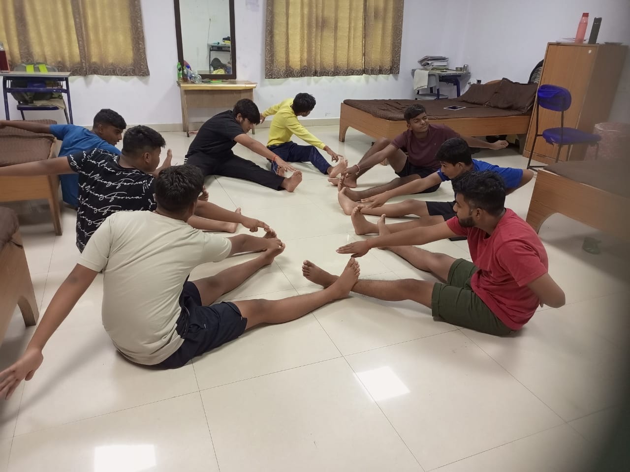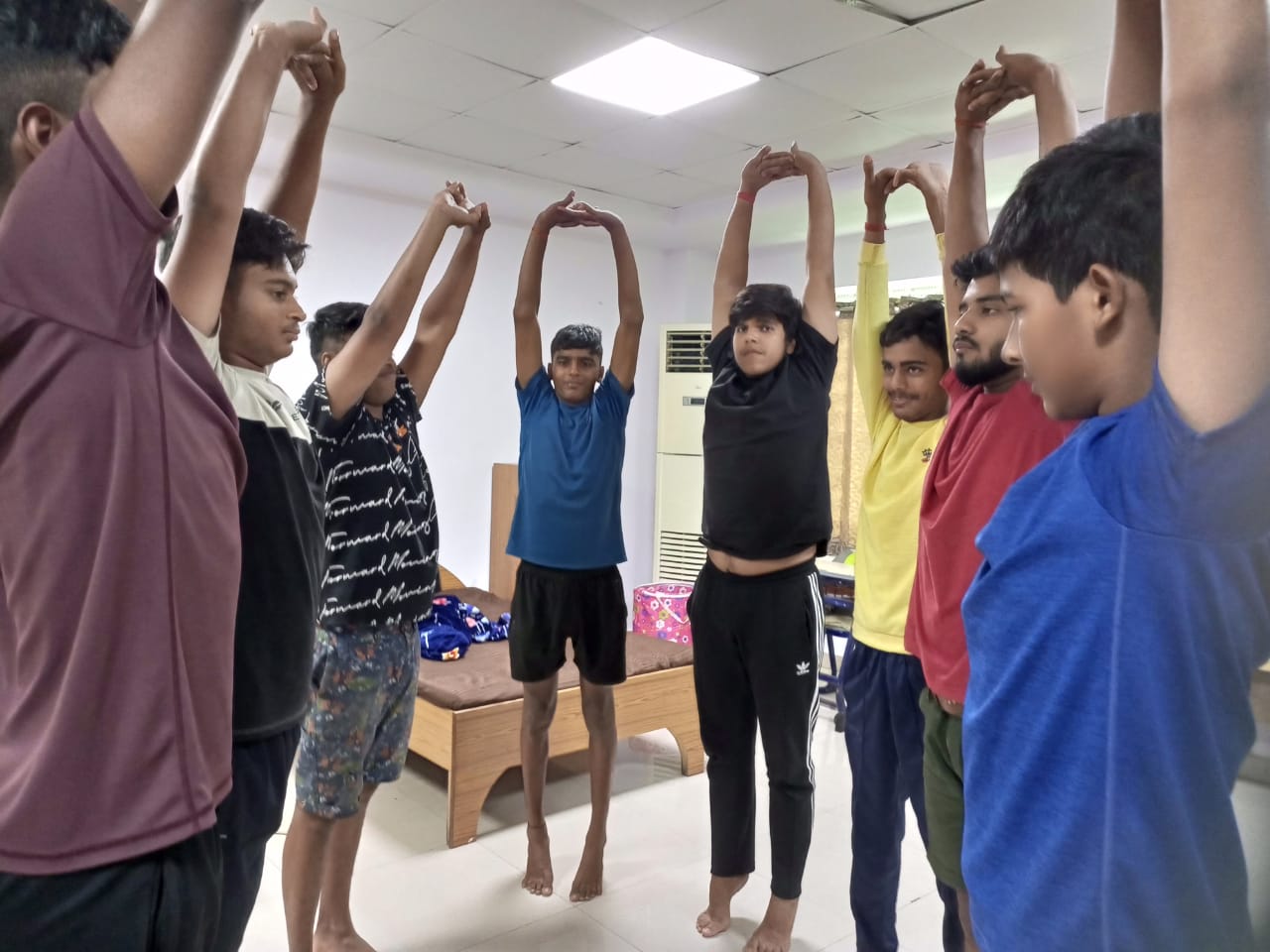 Hostel Boys are doing Yoga Activities at school hostel campus.